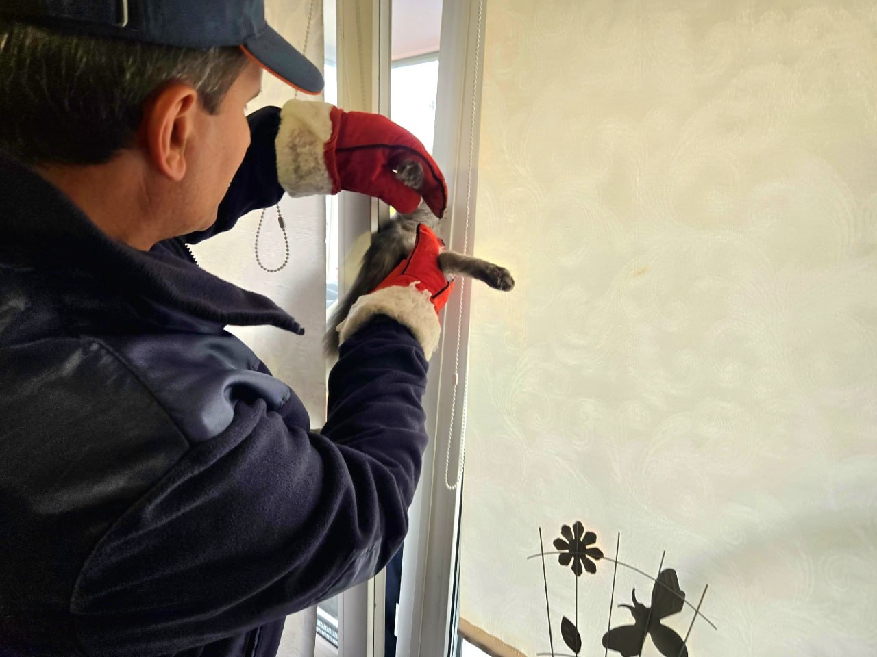 Спасательная операция по-котоумному: в Челябинске вызволили питомца, застрявшего в балконной двери