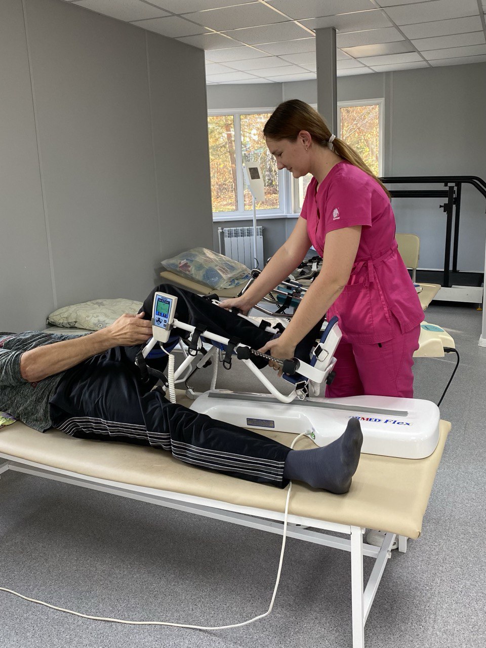 «Зал оснащен механотерапевтическими аппаратами, которые применяются для продолжительной пассивной и активной разработки суставов верхних и нижних конечностей, гарантирующих анатомически правильные движения в суставах с возможностью точно дозировать нагрузку на мышцы», — говорит завотделением медицинской реабилитации №1 Анна Семеина.