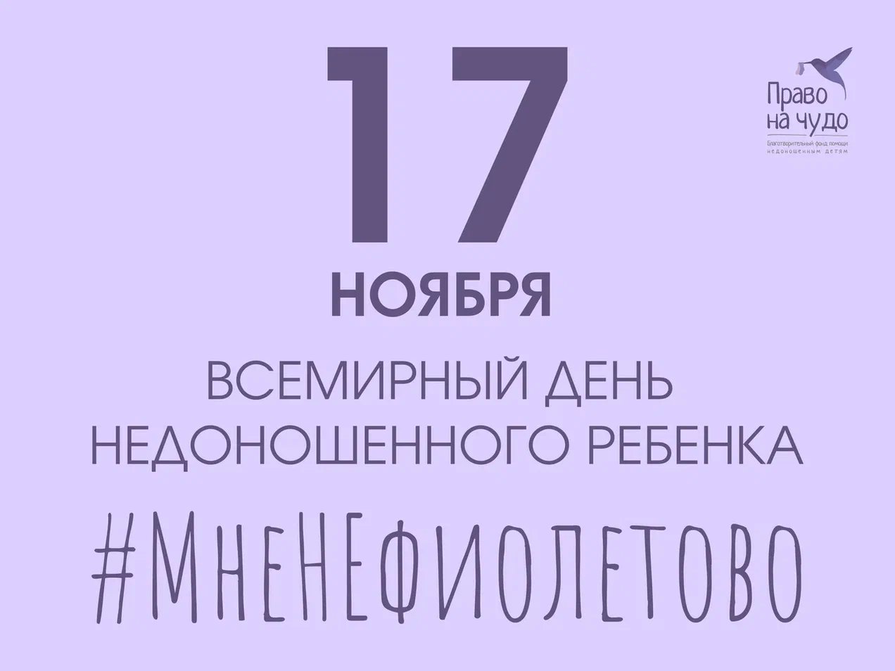 енных детей, который отмечается ежегодно 17 ноября. Главная цель - привлечь внимание к потребностям детей, которые рождаются раньше времени, чтобы выразить солидарность семьям с такими малышами.