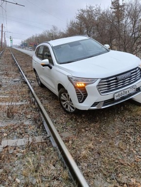 Через полчаса здесь же занесло легковушку, она врезался в тросы на середине дороги.