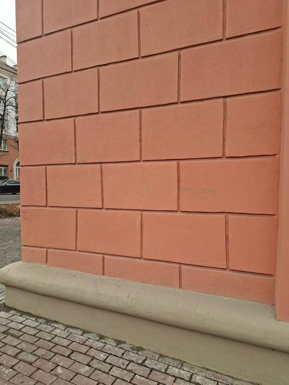 Сейчас стену дома на Тимирязева уже привели в порядок, и надпись закрасили.