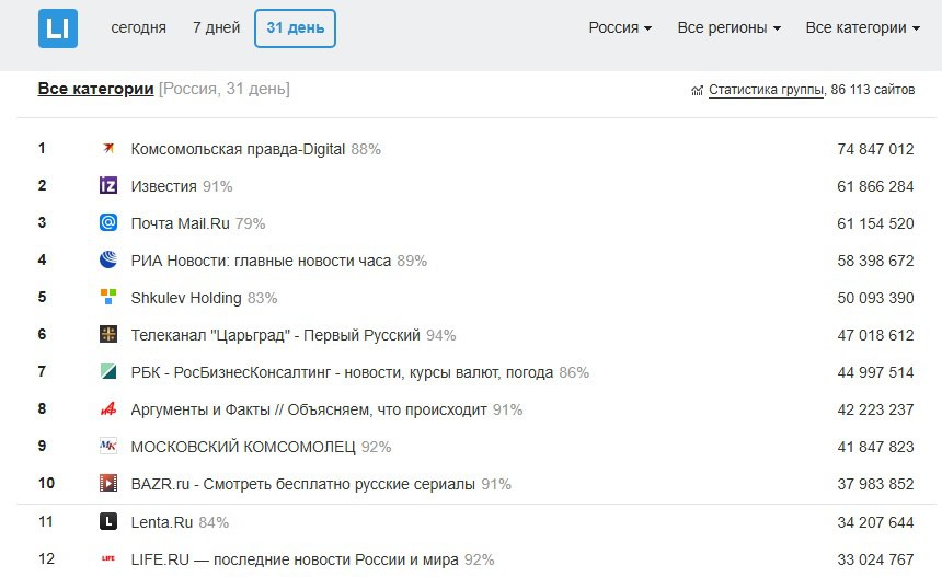 Сайт "Комсомолки" - лидер по итогам месяца не только в категории СМИ, а среди всех интернет-ресурсов Рунета!