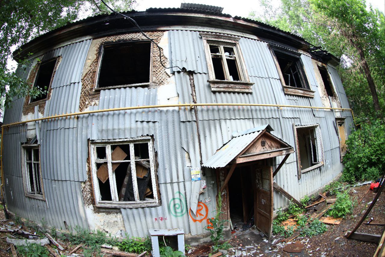 Пугающий аварийный дом на гостевом маршруте в Челябинске закроют фальш-завесой