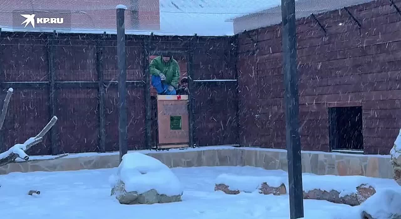В челябинский зоопарк привезли самку снежного барса. Пятнистая хищница приехала на время из Москвы.