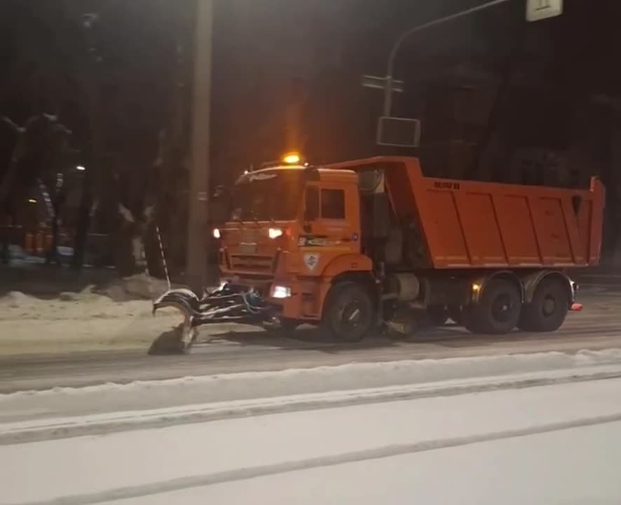 Минувшей ночью работало 225 единиц техники. В уборке была задействована бригада дорожных рабочих из 178 человек.