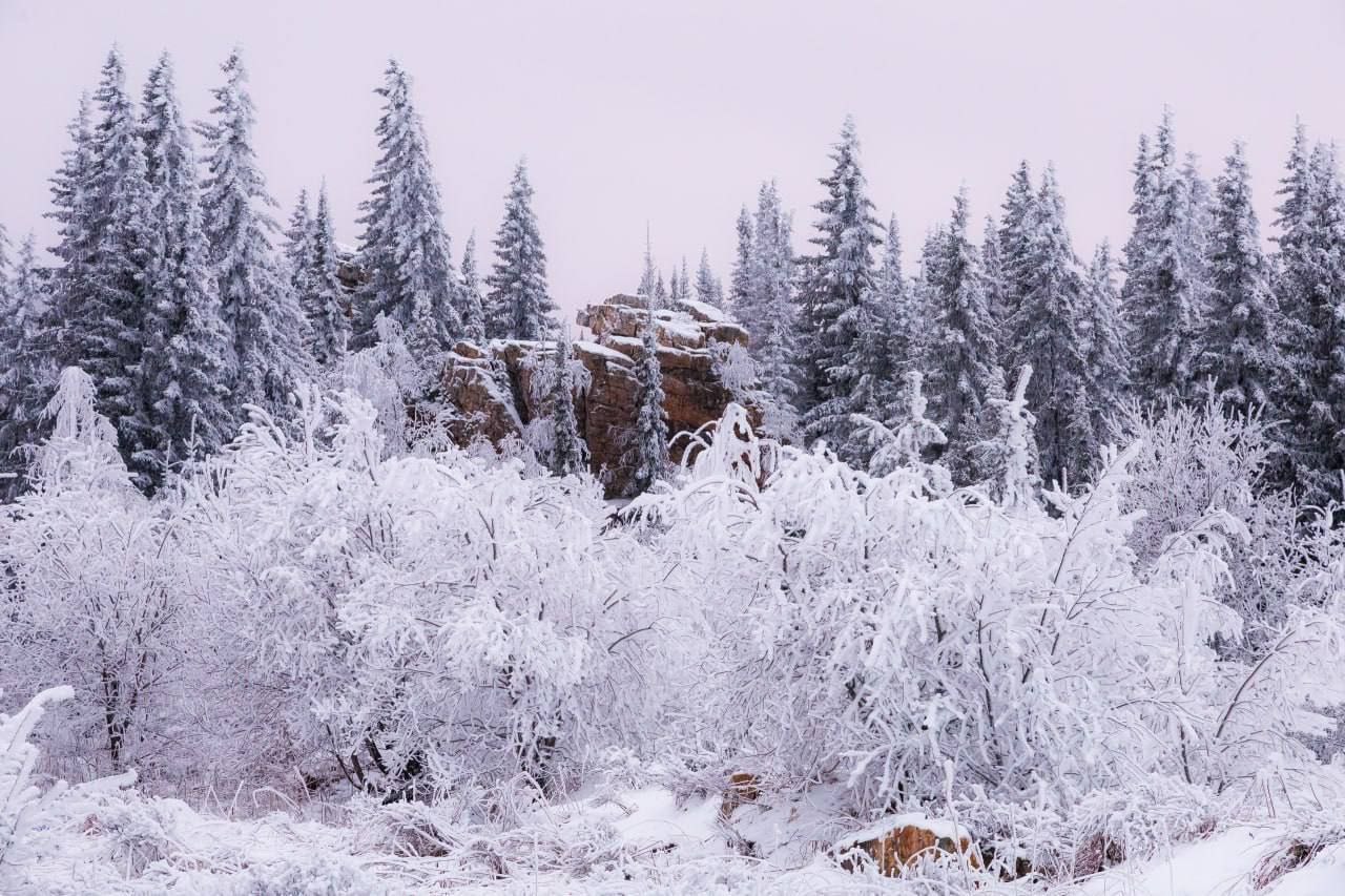 Такие же красивые кадры можно сделать в Иркускане в Саткинском районе. Заснеженный лес находится недалеко от города Бакал.