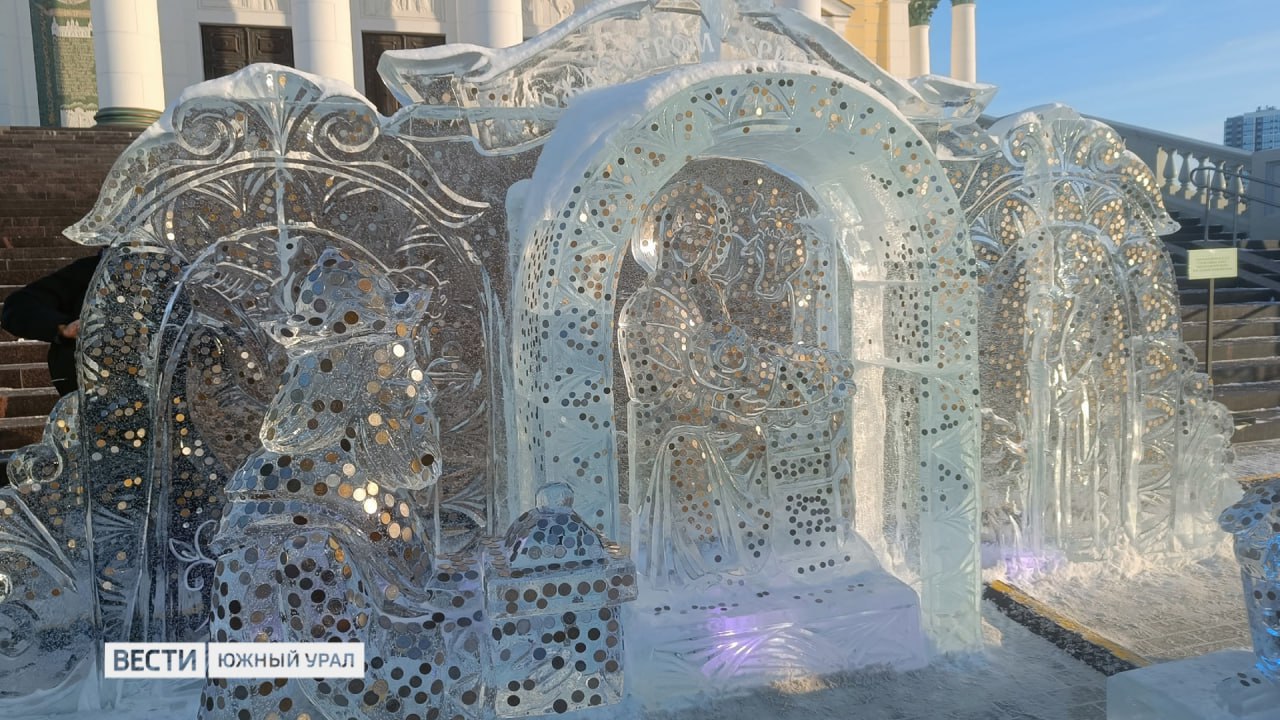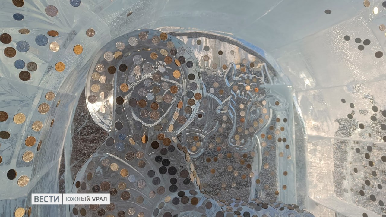 Ледяной вертеп облепили монетами в Челябинске