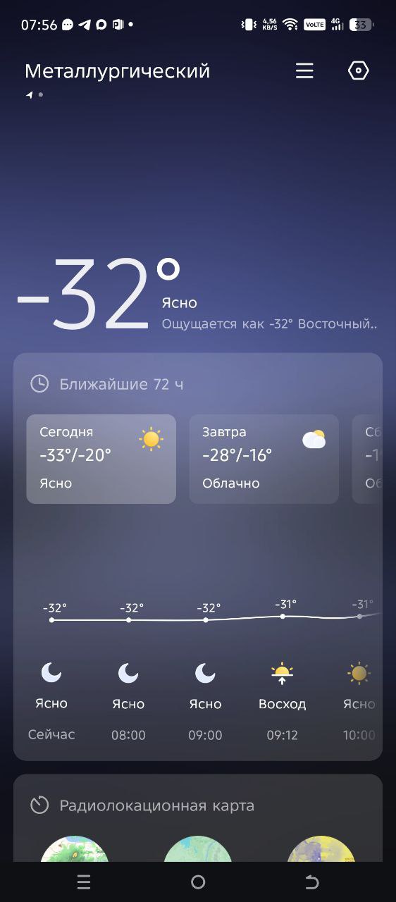 Снова отличился Красноармейский округ, там до -40°. Экстремально низкие температуры отмечены в Карталах -38°, в Троицке и Есаульском, где было по -37°, в Пласте и Долгодеревенском — около -35°. В Челябинске утром зафиксировано -35°, в Копейске -34°.