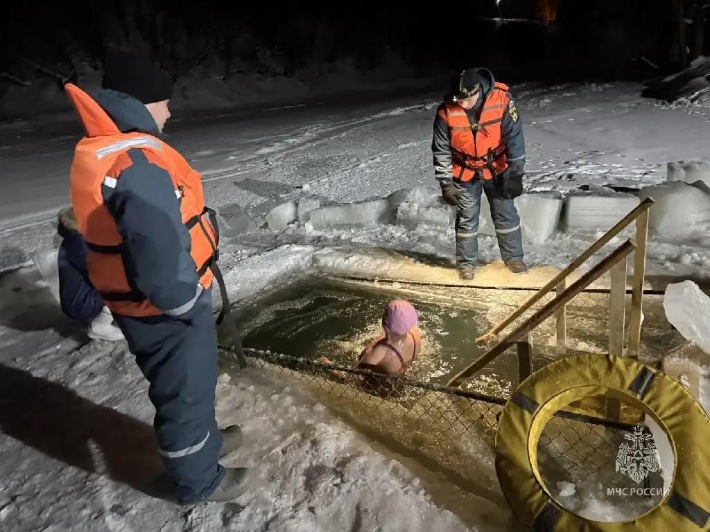 Накануне Крещенской ночи спасатели прошли специальное обучение. Вместе с ними на объектах дежурили медики, сотрудники полиции, Росгвардии и ГИБДД. Спуски в воду оборудовали деревянными сходнями и ограждениями подо льдом. Возле каждой купели установили палатки с подогревом, скамейками и вешалками для одежды.