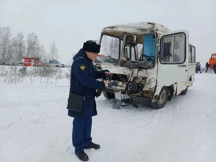 Под Челябинском утром 29 января произошла авария с маршрутным автобусом и двумя грузовиками.