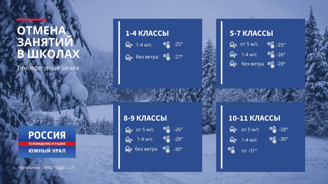 Комитет по делам образования города принял решение об отмене занятий из-за морозов с 1 по 7 классы первой смены.