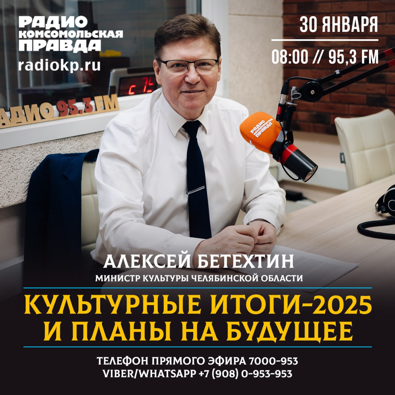 Минувший год оказался богат на культурные события. Огромное количество фестивалей, концертов, культурных мероприятий. Финал года получился вообще фантастическим - Челябинск победил в борьбе за звание Культурная столица 2027. Как говорится, то ли еще будет! Самое время не только подвести культурные итоги прошлого года, но и наметить планы на этот. В пятницу, 30 января, в 8:00 гость эфира на радио "Комсомольская правда" (95.3FM) министр культуры Челябинской области Алексей БЕТЕХТИН