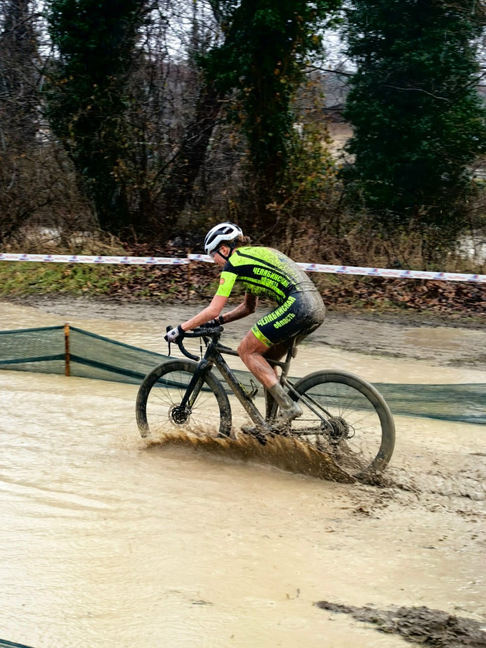 Велогонщица из Копейска искупалась в грязи и завоевала медаль на первом старте сезона
