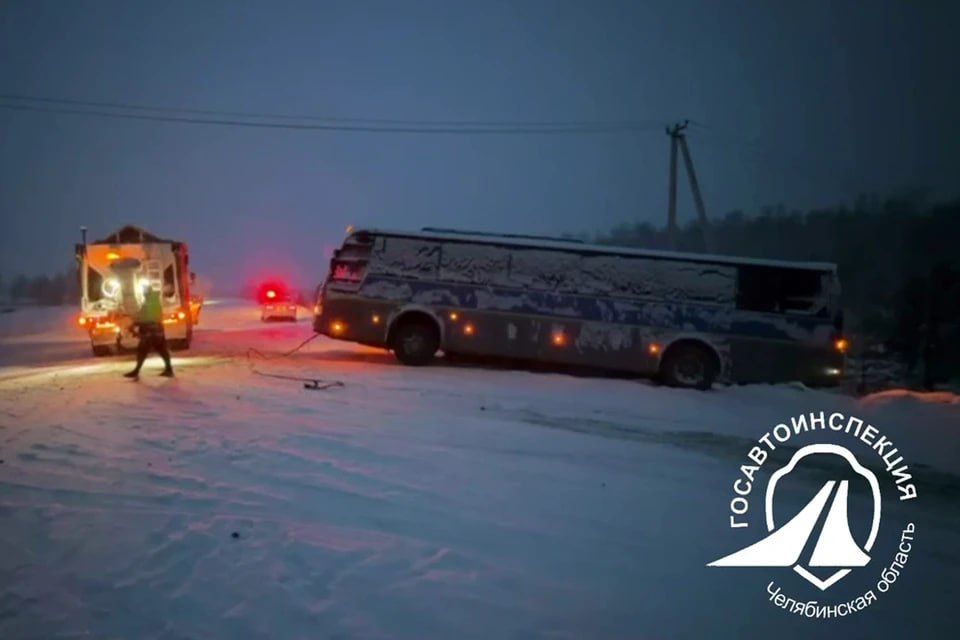 Под Челябинском утром 9 февраля автобус слетел в кювет.