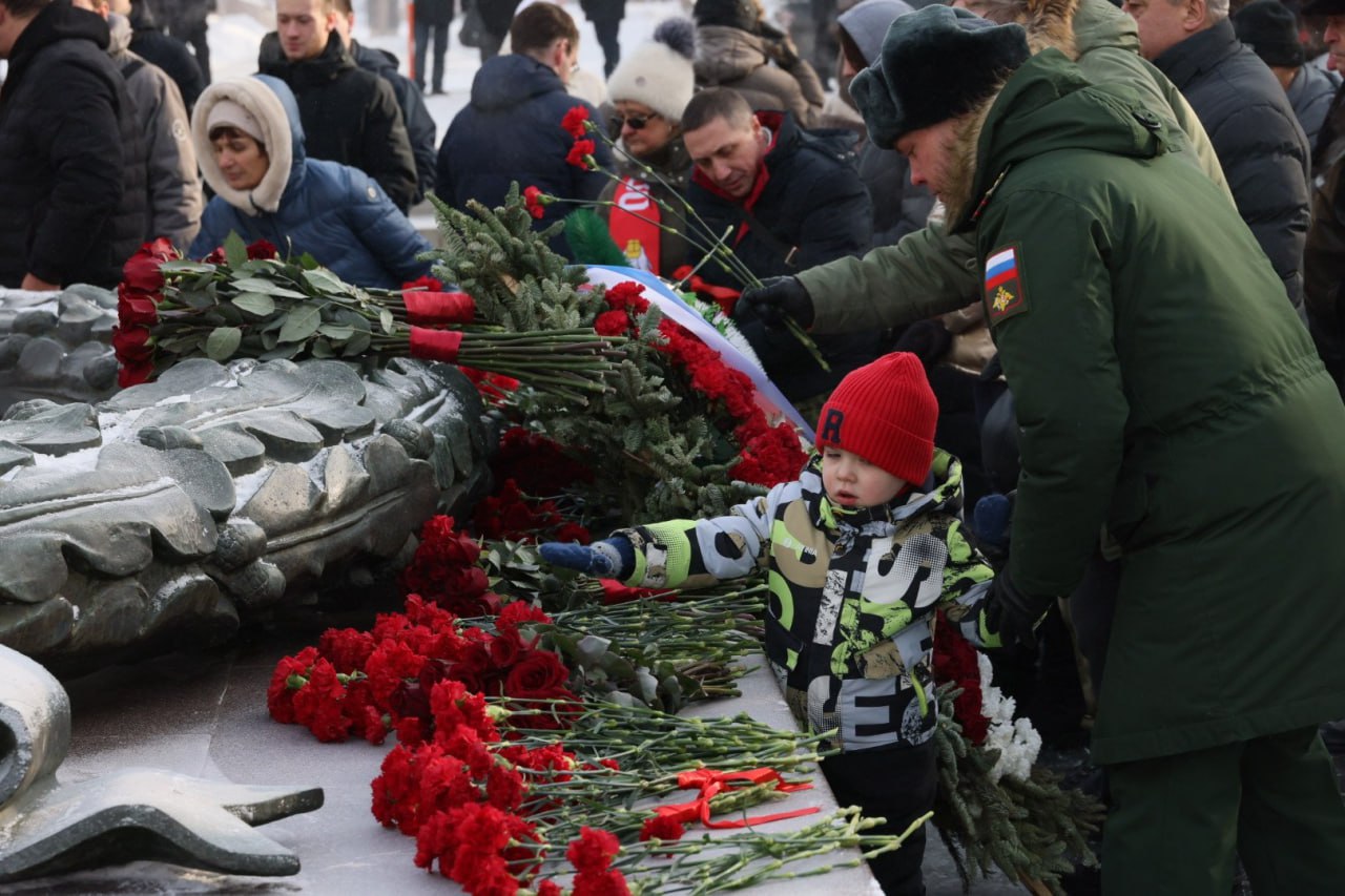 В День защитника Отечества в Челябинске почтили память героев. Вместе с губернатором Алексеем Текслером на торжественной церемонии жители возложили цветы и венки к Вечному огню.