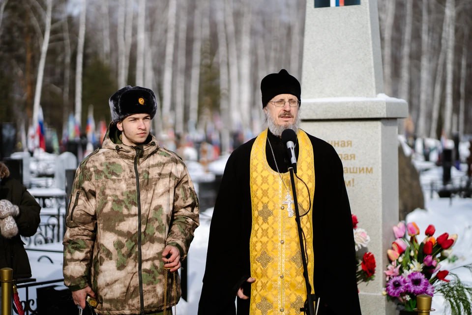 Прошли молитвы для православных и для мусульман. Священник объясняет: подвиг воина священен и погибнуть за Родину почетно. На некоторых могилах кресты, над другими стоят обелиски с фото в полный рост, где мужчины позируют с медалями после соревнований по ММА, в кимоно или бронежилете. К ним родные пошли после митинга, чтобы обмести снег и подровнять тропинки.