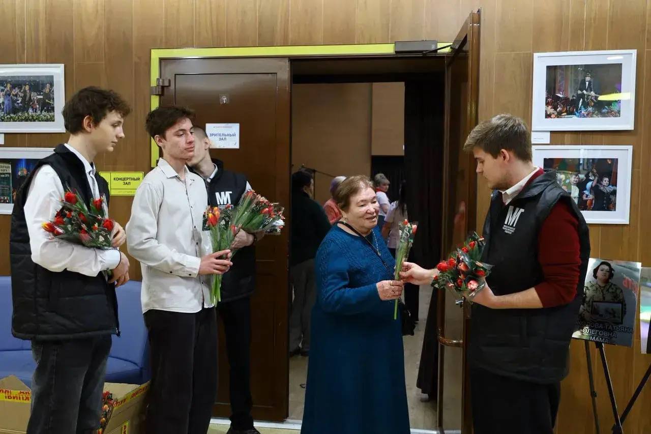 Каждой участнице подарили тюльпаны и праздничные открытки. А во время вечера состоялась премьера клипа, посвященного памяти погибших бойцов.