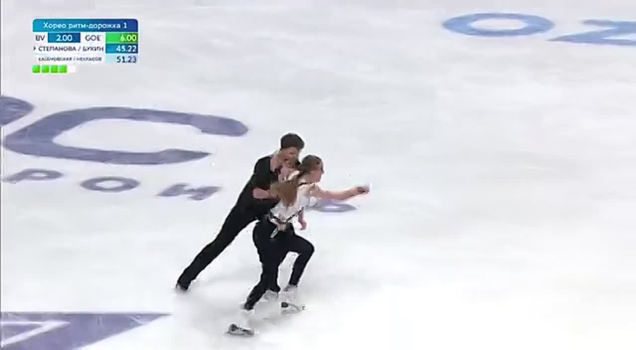 Танцевальный дуэт Александра Степанова и Иван Букин лидирует после ритм-танца в финале Гран-при России по фигурному катанию. Они набрали 88,85 баллов.