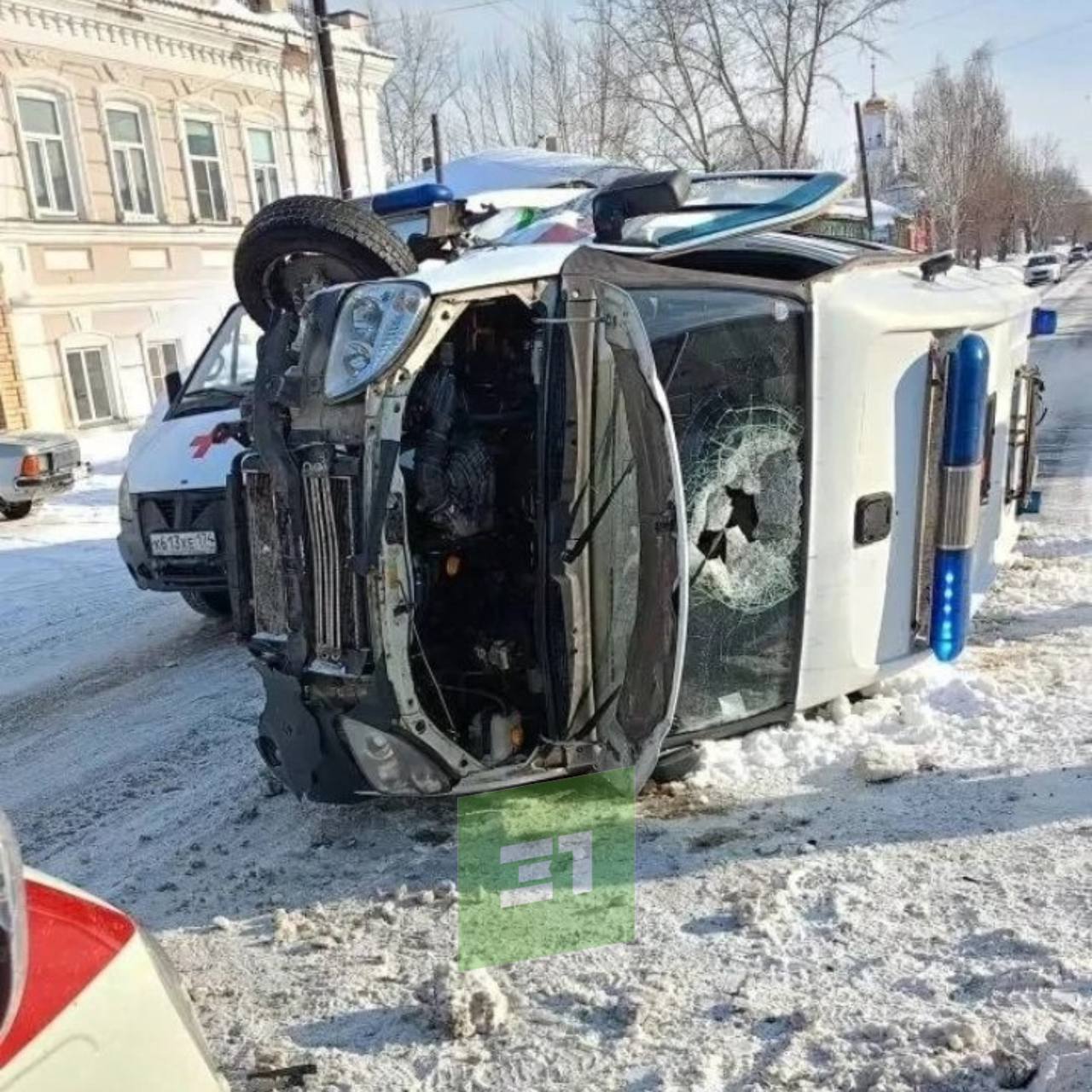 В Троицке машина скорой помощи налетела на сугроб и перевернулась. 3 человека ранены