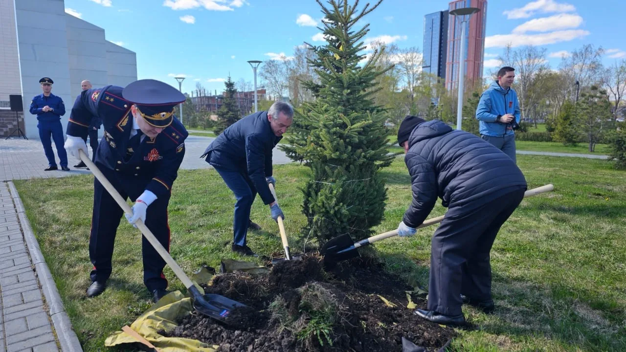 Сегодня, 29 апреля 2026 года, у мемориального комплекса «Солдатам правопорядка» состоялась высадка елей в знак памяти о героических поступках сотрудников органов внутренних дел, отдавших свою жизнь за светлое будущее.