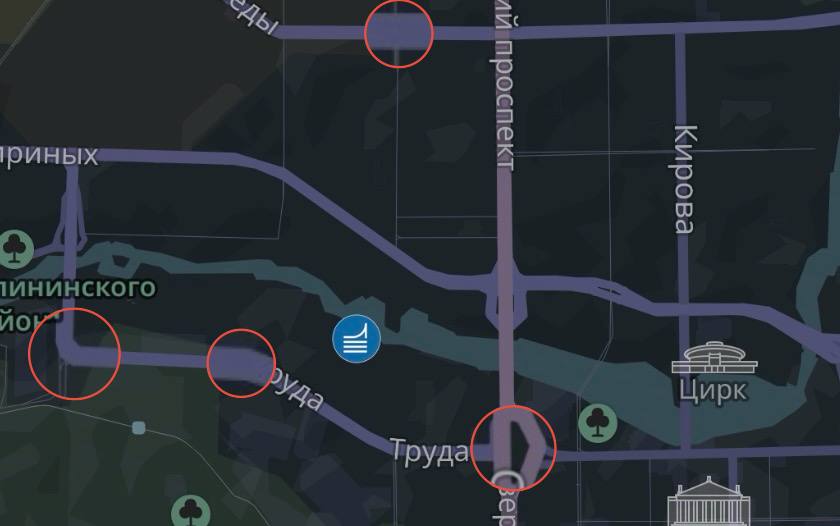 Труда и Свердловского проспекта (в районе дворца спорта «Юность»);