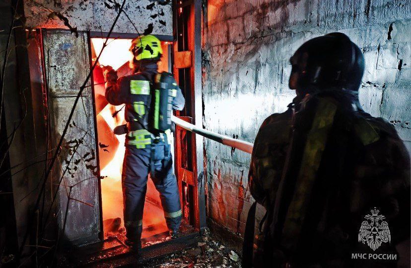 Сотрудники МЧС России работают на пожаре в Челябинске