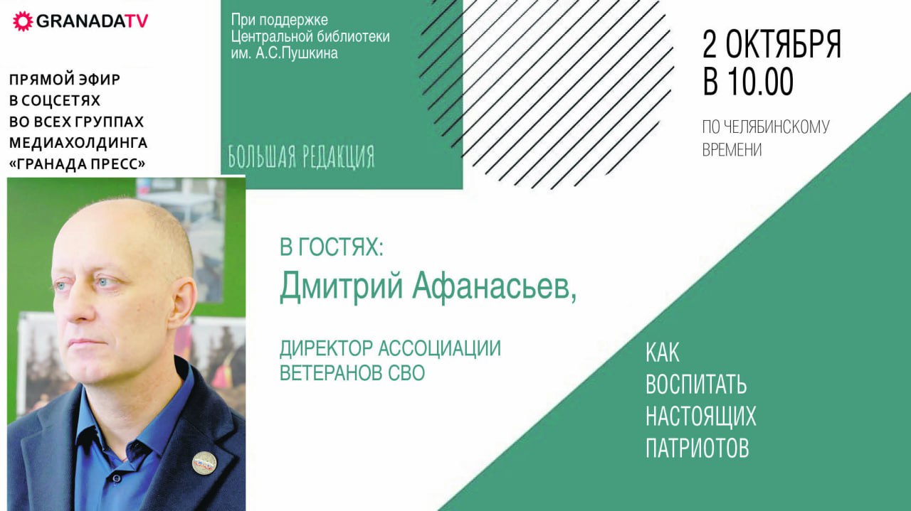 Завтра героем очередной «Большой редакции» станет председатель Ассоциации ветеранов специальной военной операции Дмитрий Афанасьев. В прямо эфире он обсудит с ведущим вопросы патриотического воспитания.