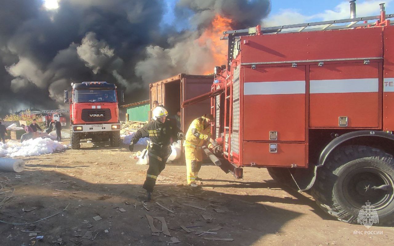 В Челябинске огнеборцы МЧС России ликвидируют пожар в мебельном цехе