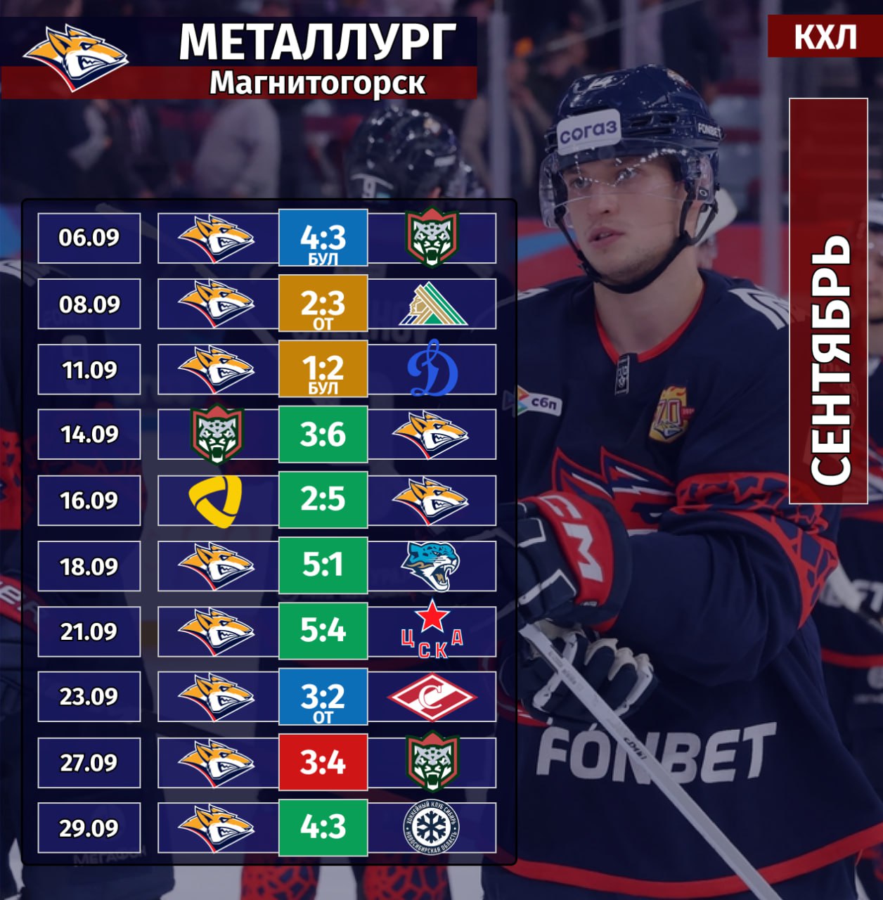 Подводим итоги первого месяца «регулярки» для магнитогорского «Металлурга».