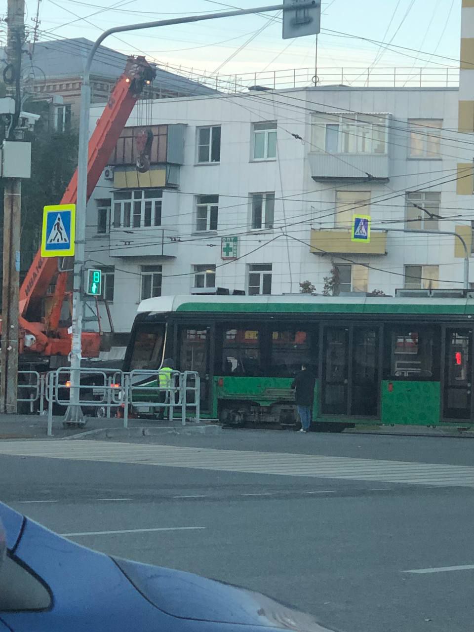 На перекрестке Горького-Победы трамвай сошёюел с рельсов, сообщает наш читатель