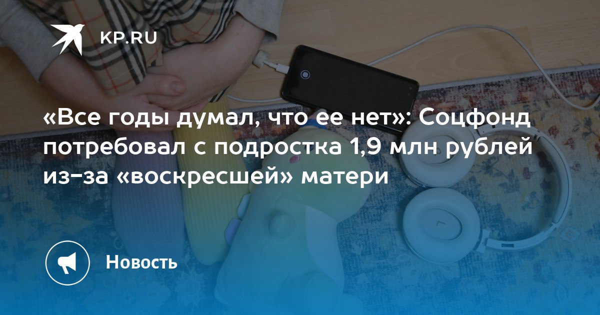 Андрей М. (имя изменено, - прим.ред.) спокойно готовился к экзаменам, выбирал профессию - нужно было думать, как дальше строить жизнь. Его мать уже много лет была признана судом безвестно отсутствующий, и мальчик давно смирился с тем, что ее нет. Но тут как гром среди ясного неба – Социальный фонд России потребовал вернуть 1,9 млн рублей, которые он все эти годы получал как пенсию по потере кормильца. Как выяснилось, его мама жива и здорова, она вышла на работу. И теперь соцфонд требует вернуть все полученные средства. За помощью он обратился к уполномоченному по правам ребенка в Челябинске.