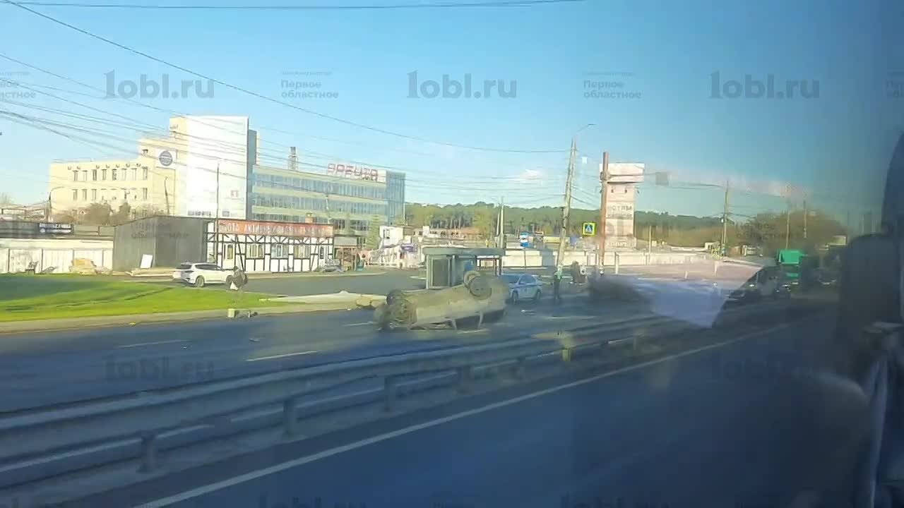В Челябинске столкнулись два автомобиля, один опрокинулся