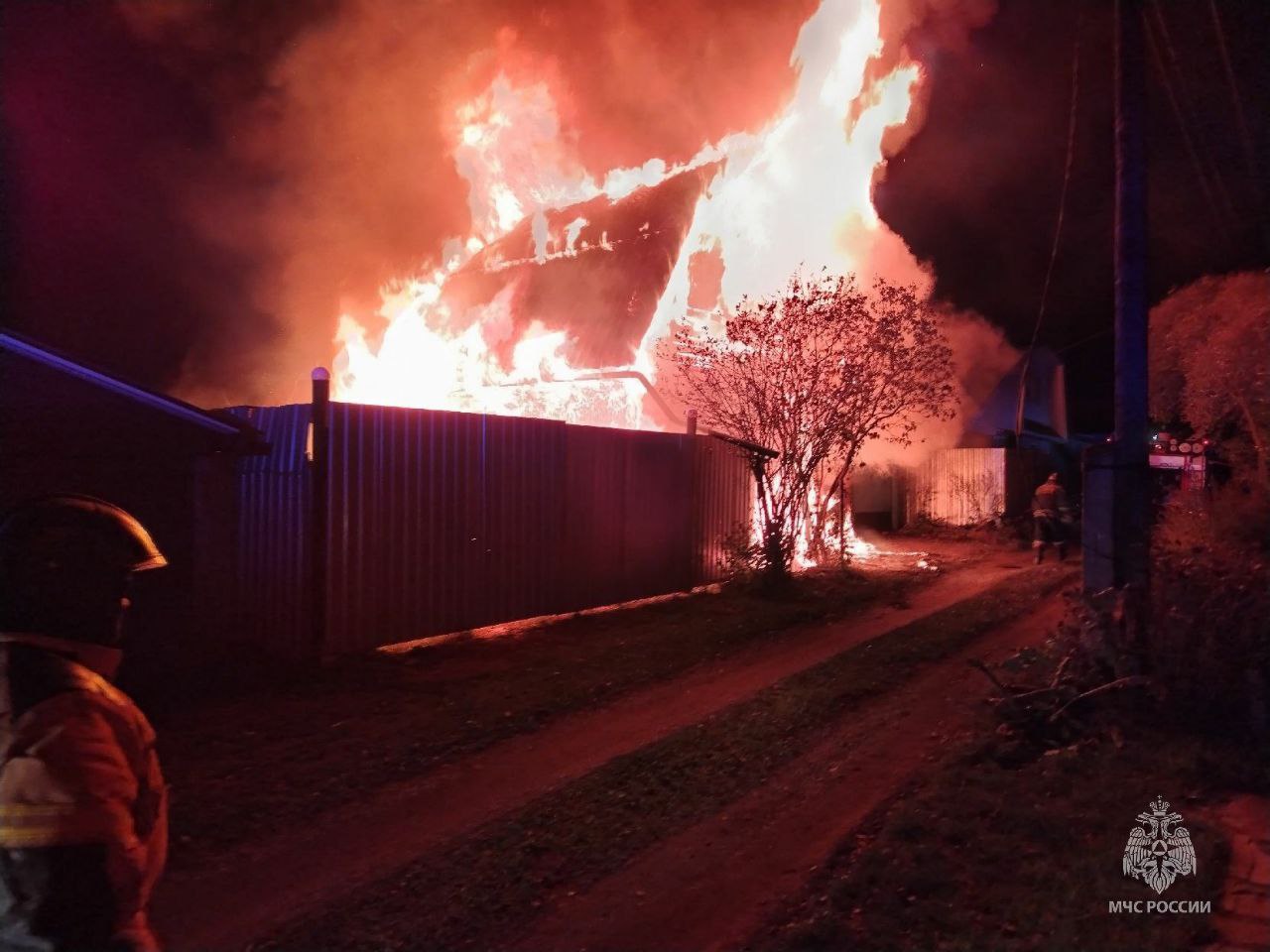 ЧП произошло минувшей ночью. Хозяйка постройки не пострадала: ее из горящего дома вывел на улицу очевидец.