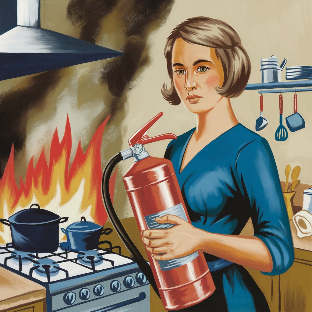 поднеси огнетушитель к пламени на расстояние около двух метров;