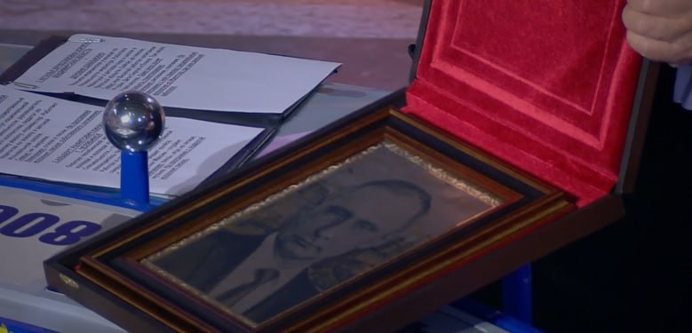 Альберт Галимов, известный как «поющий шиномонтажник», стал участником шоу «Поле чудес». Угадать слово мужчине не удалось, зато он передал ведущему Леониду Якубовичу ценный подарок — портрет президента России Владимира Путина, выполненный златоустовскими мастерами в технике гравюры на стали специально для телеведущего.