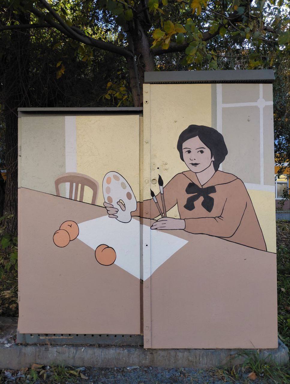Свежие работы можно увидеть возле Художественного училища на проспекте Победы, 168, и на пересечении улиц Худякова и Лесопарковой. Художники старались, чтобы изображения не выбивались из городской среды, а наоборот — подчеркивали архитектуру и создавали настроение для прохожих.