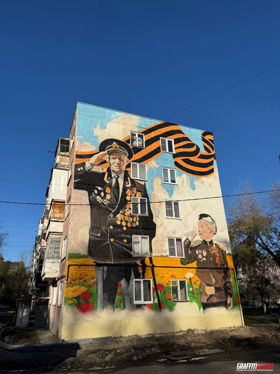 "Каждый мурал отражает глубокую благодарность и уважение к защитникам Родины, которые с безоговорочной самоотдачей боролись за мирное небо над головой", — отмечают в ассоциации художников "Граффити Россия".
