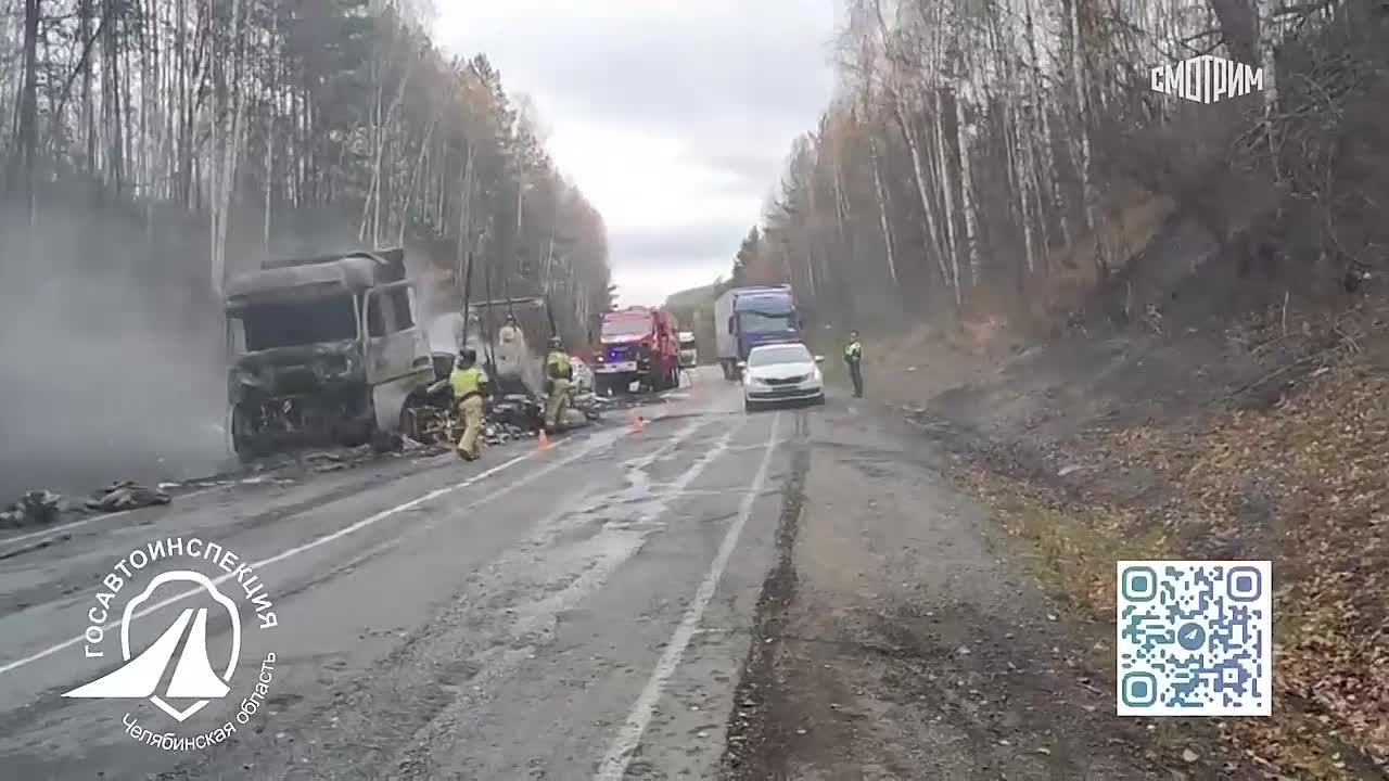 Огромная фура загорелась на трассе в Челябинской области, пострадавших нет, сообщили в местной Госавтоинспекции.