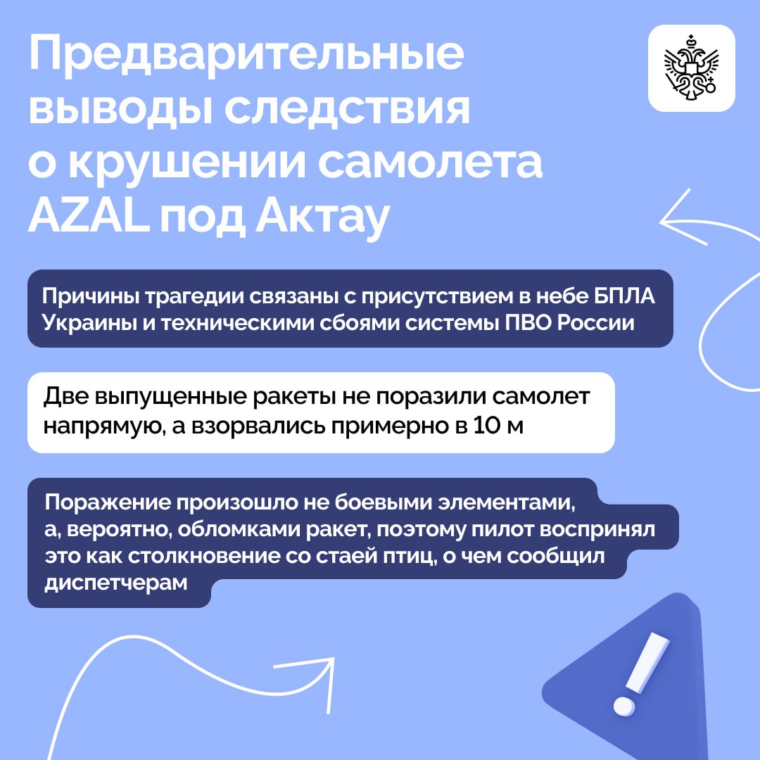 Президент России рассказал главе Азербайджана о промежуточных выводах следствия по делу о крушении самолета AZAL в декабре 2024 года. Ильхам Алиев поблагодарил Владимира Путина за то, что он лично держит эту ситуацию под контролем.
