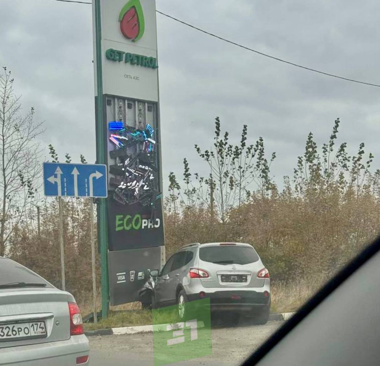На Копейском шоссе Ниссан протаранил конструкцию заправки, обрушив экраны с ценниками.ГАИ Копейска: за рулем сидел 37-летний мужчина. Дознаватели выясняют причину тарана. Сам водитель не пострадал.