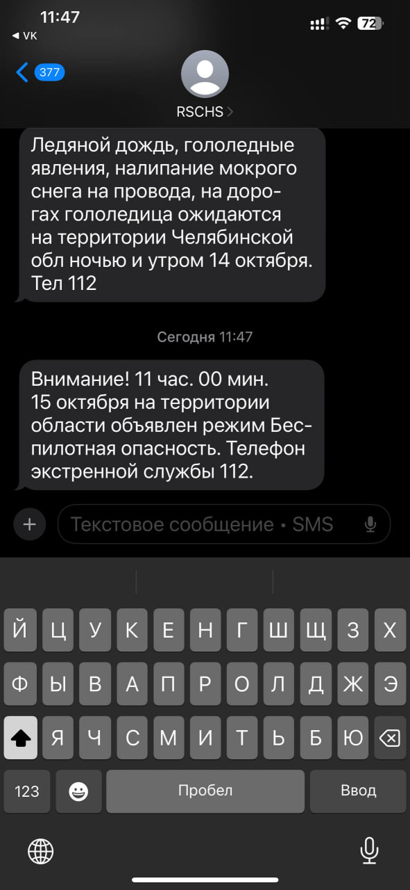 Челябинцам начали поступать сообщения от РСЧС о возможной беспилотной угрозе.
