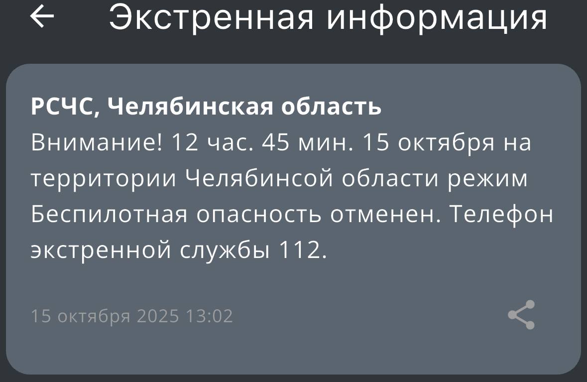 Режим «Беспилотная опасность» в Челябинской области отменен