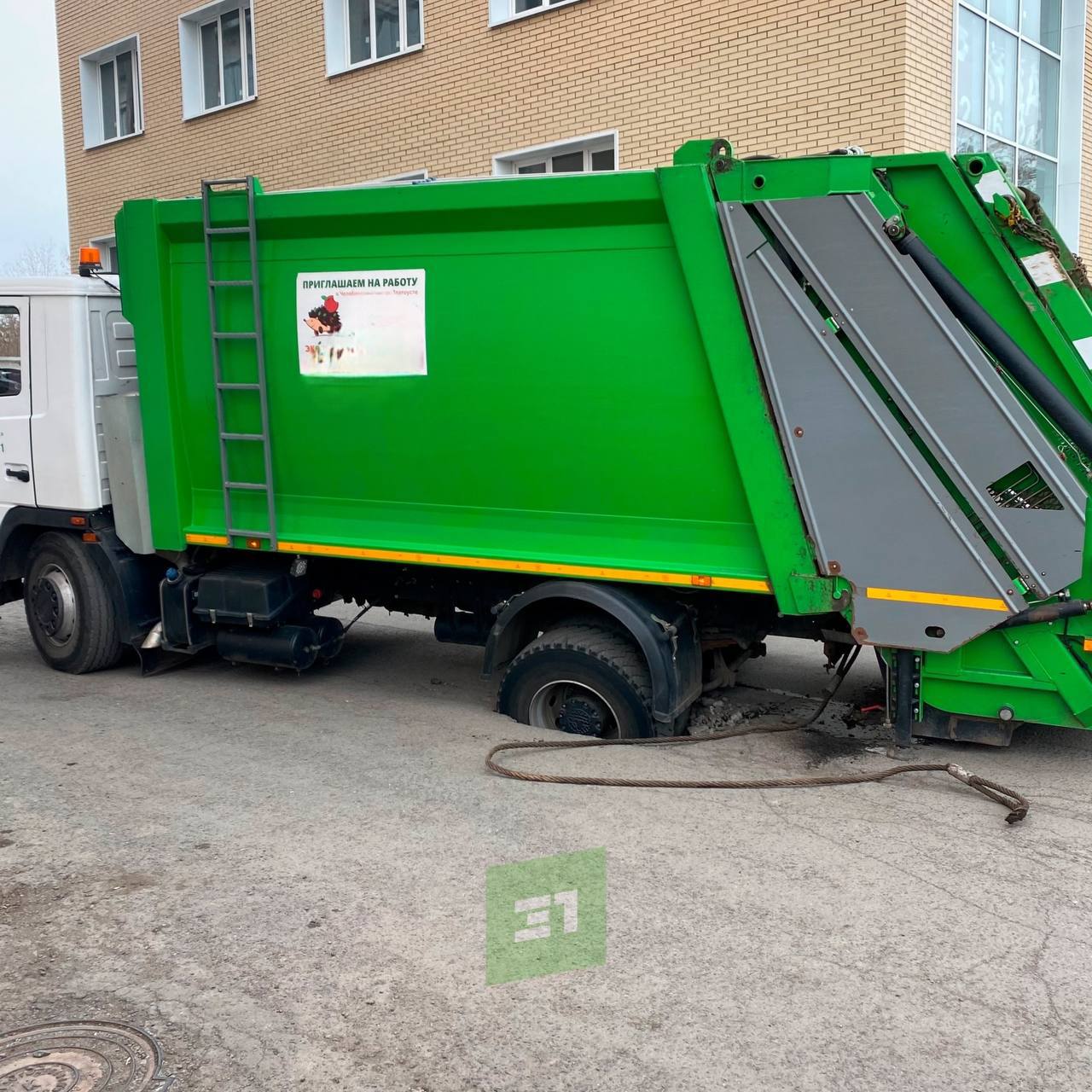 В прошлый понедельник мусоровоз провалился на улице Томилова.