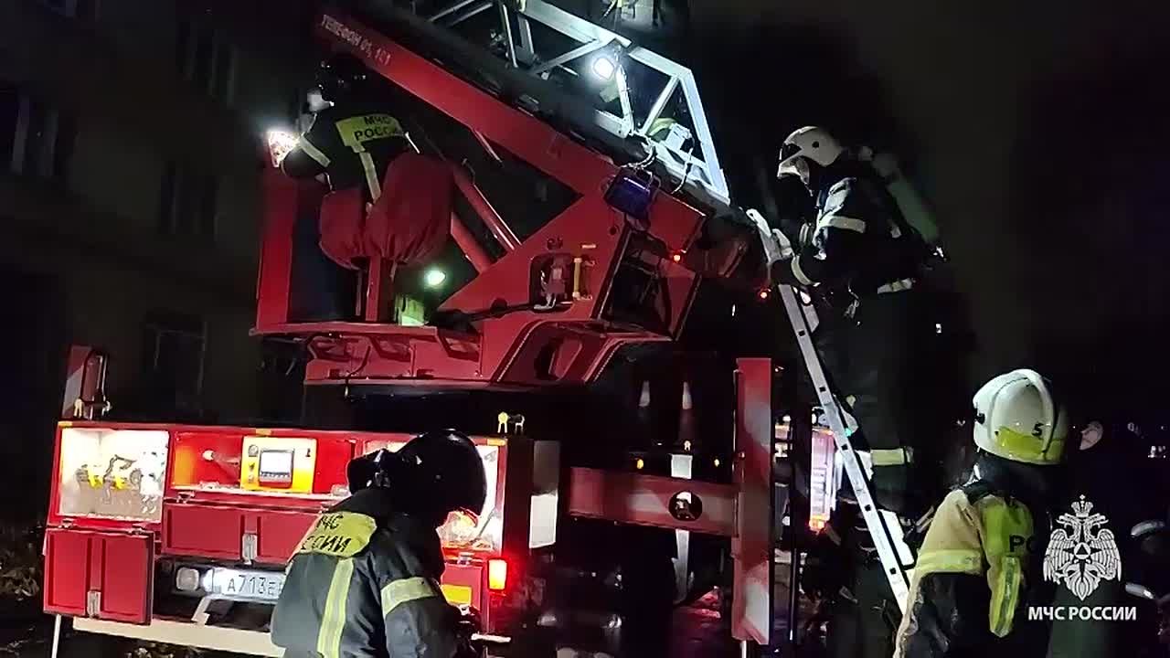 Спасатели МЧС России в первую очередь занялись эвакуацией людей. Из одной из квартир вынесли мужчину с признаками отравления угарным газом — его передали медикам. Ещё 15 человек, включая шестерых детей, вывели по лестницам в спасательных комплектах.