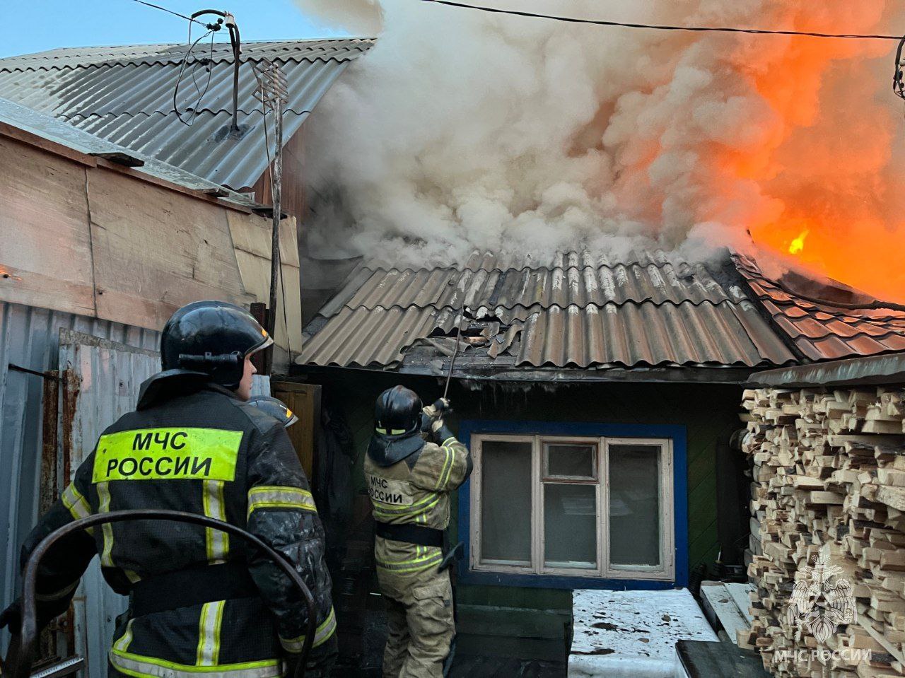 Частный жилой дом горит в Челябинске