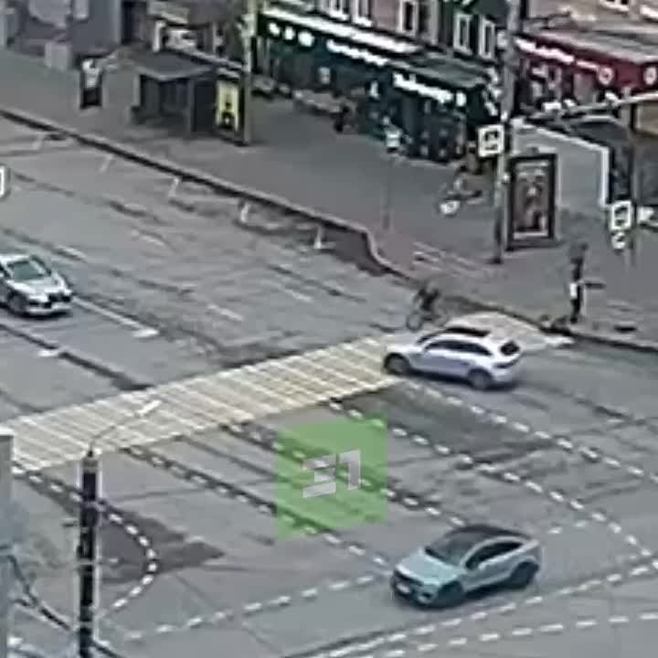Челябинец гнал на велике по тротуару. В этот момент водитель стоял у пешеходного перехода и пропускал людям. Через мгновение они встретились.