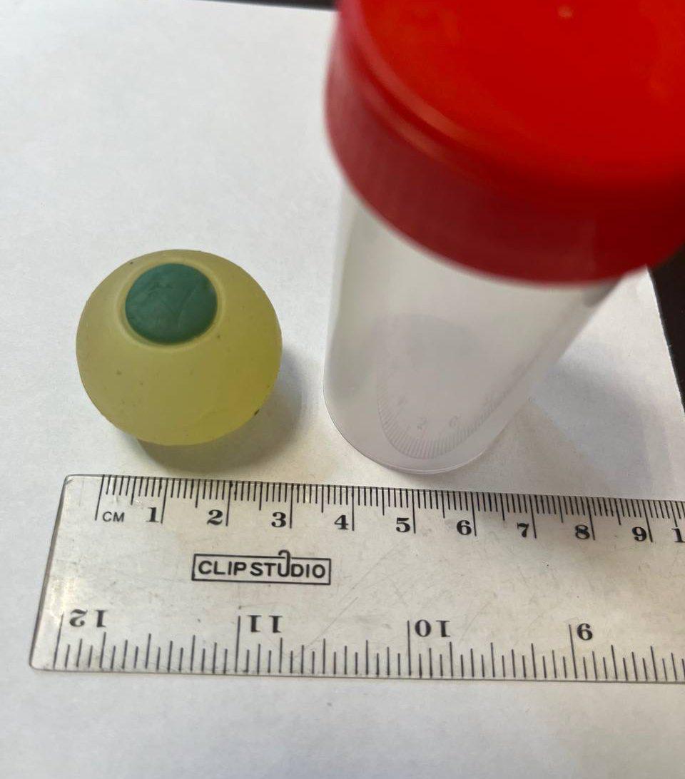 Когда его извлекли, врачи увидели (и он их тоже)силиконовый глаз размером три сантиметра.