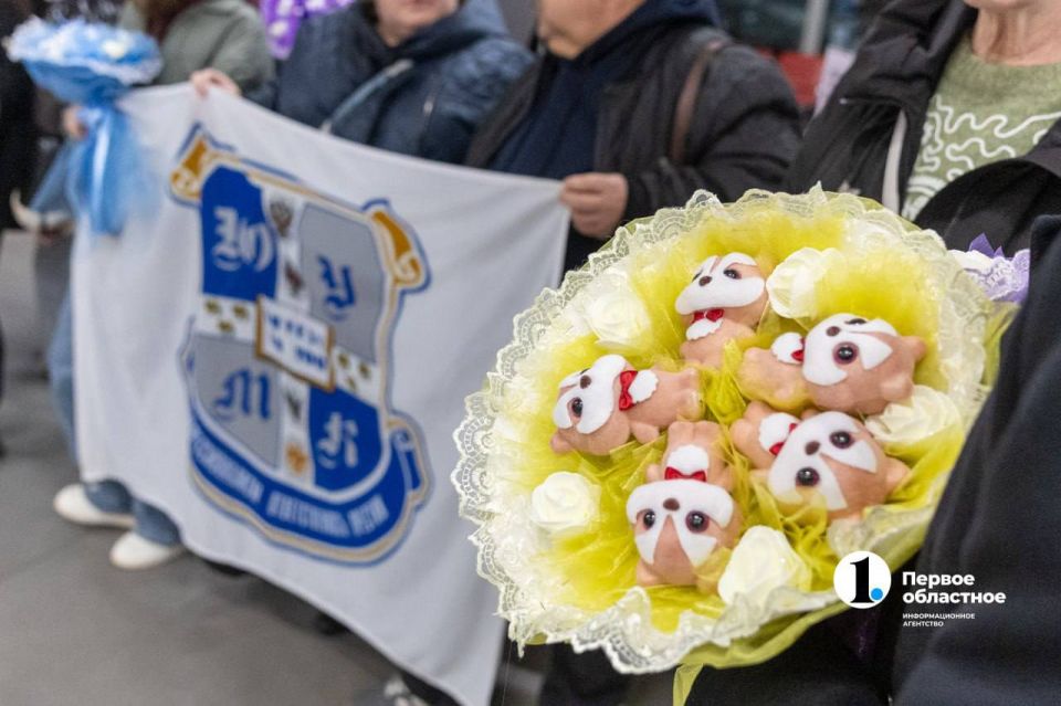 С цветами, шарами и плакатом, торжественно ликуя, прямо в аэропорту южноуральцев встретили близкие, друзья. Они стали лучшими в стране и доказали это на чемпионате.