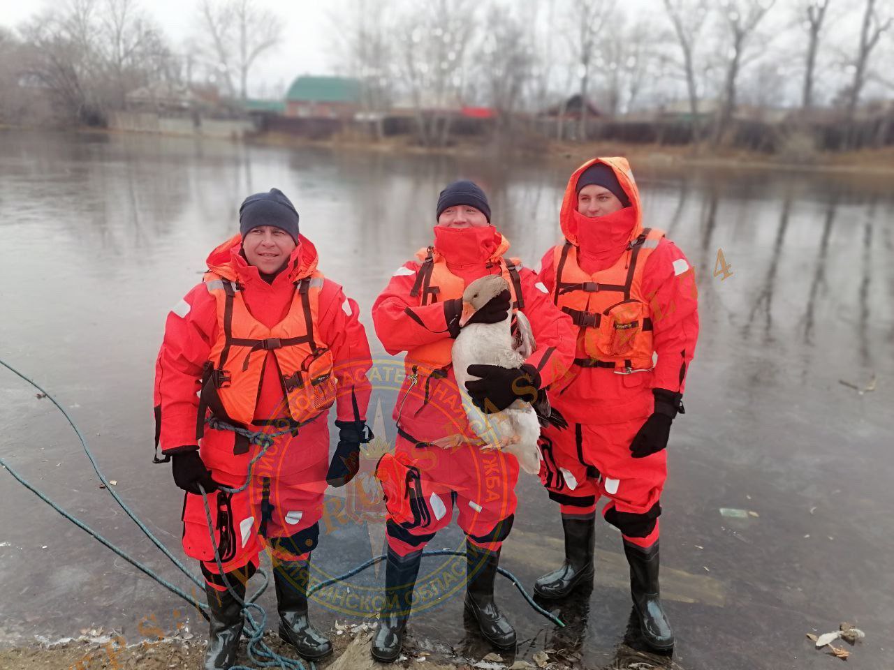 Ну а сотрудники ПСС без работы не остались — они эвакуировали гуся со льда и передали хозяину.