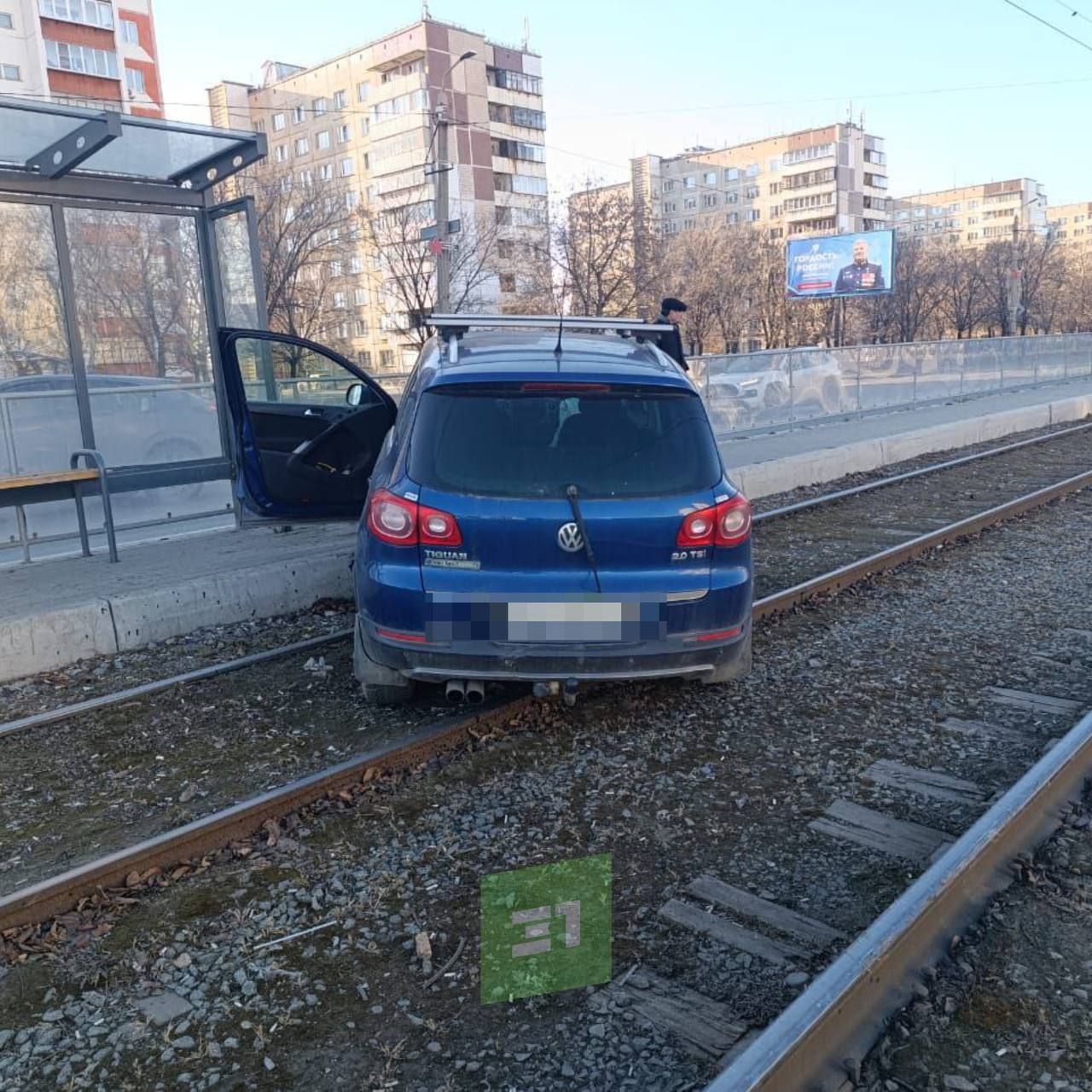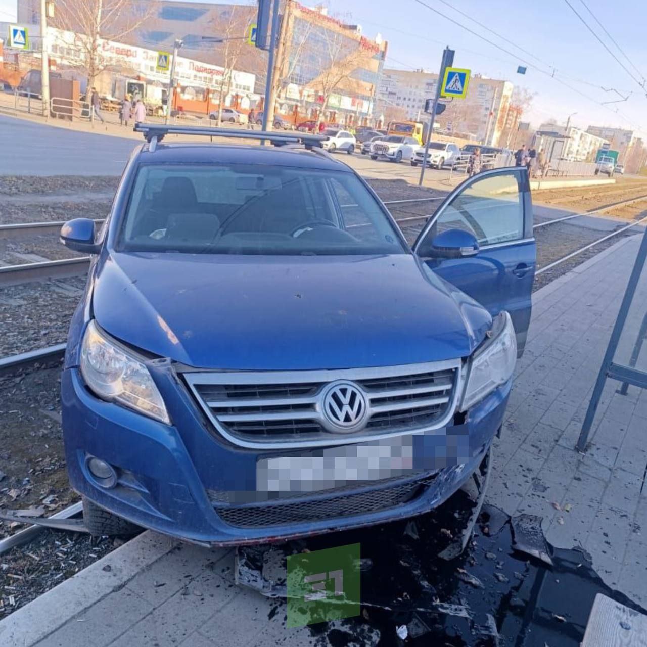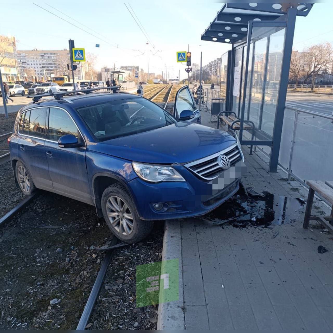 На пр. Победы автомобилист врезался в трамвайную остановку